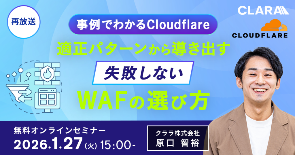 2026年1月27日(火) 15時~【再放送】事例でわかるCloudflare:適正パターンから導き出す失敗しないWAFの選び方