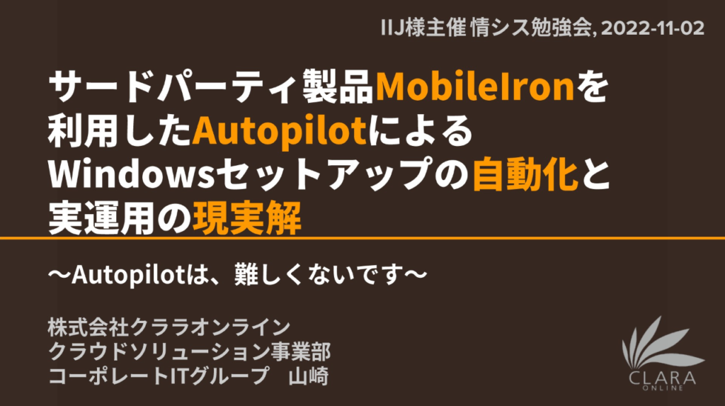 【情シス向け勉強会型セミナー】サードパーティ製品を利用したAutopilotによるWindowsセットアップの自動化と、実運用の現実解