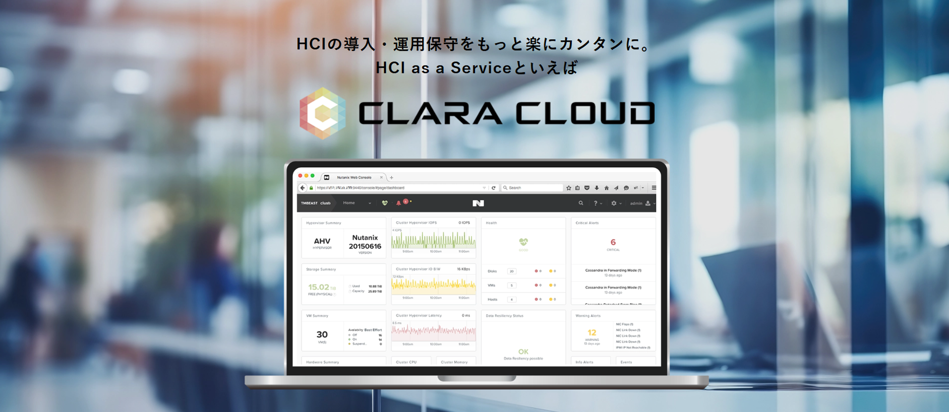 Clara Cloudは、Nutanixをベースにクララが DC/ハード/ライセンス/初期構築/24時間365日の運用・保守 を一括して担うフルマネージド型のプライベートクラウドです。