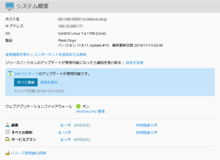 ・・・とその前に、Plesk のトップ画面を確認すると、