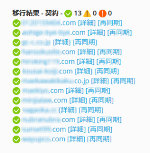 今回は、phpバージョンの相違とスパムフィルタのアプリが入っていないという点で、黄色い「!」マークが表示されてしまいましたが、phpの古いバージョンとスパムフィルターをインストールして「再同期」をクリックしていくと、ごらんのとおり問題ない結果となりました。