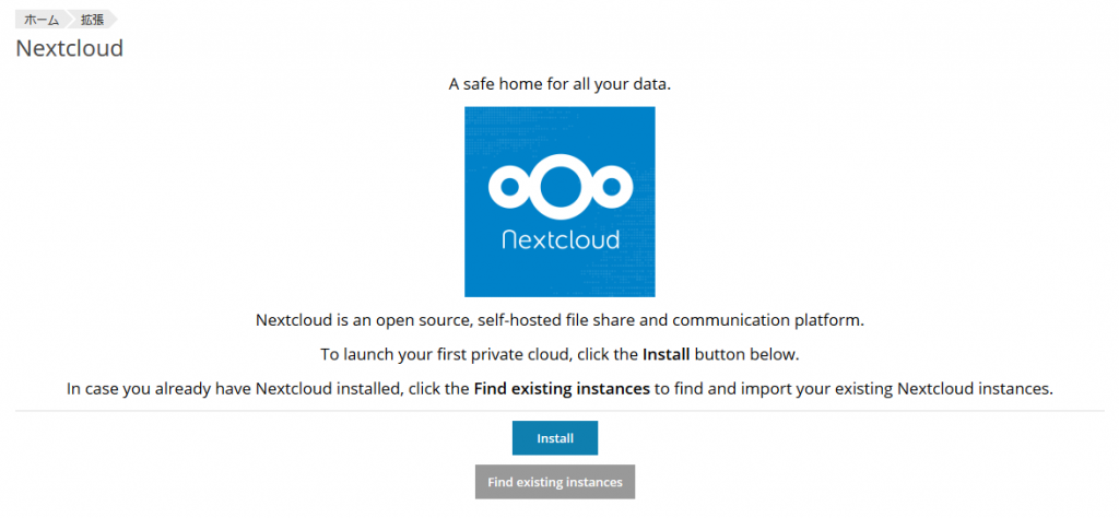 拡張メニューで Nextcloud を検索するとすぐに見つかります。